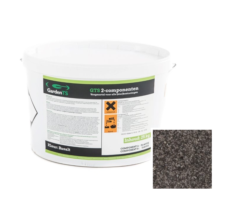 De voegmortel is verpakt in een emmer van 25 kg. Na openen direct verwerken.